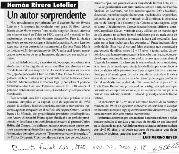 Un autor sorprendente [artículo] Luis Merino Reyes