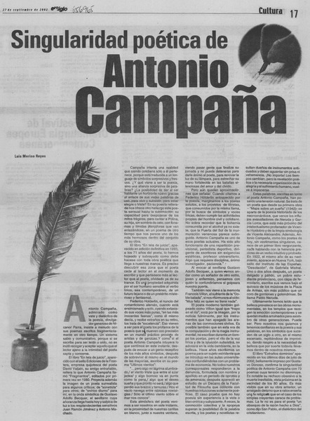 Singularidad poética de Antonio Campaña [artículo] Luis Merino Reyes.