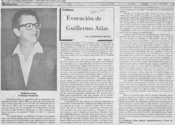 Aproximación a Guillermo Atías [artículo] Luis Merino Reyes.