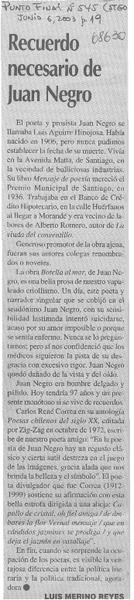 Recuerdo necesario de Juan Negro [artículo] Luis Merino Reyes.
