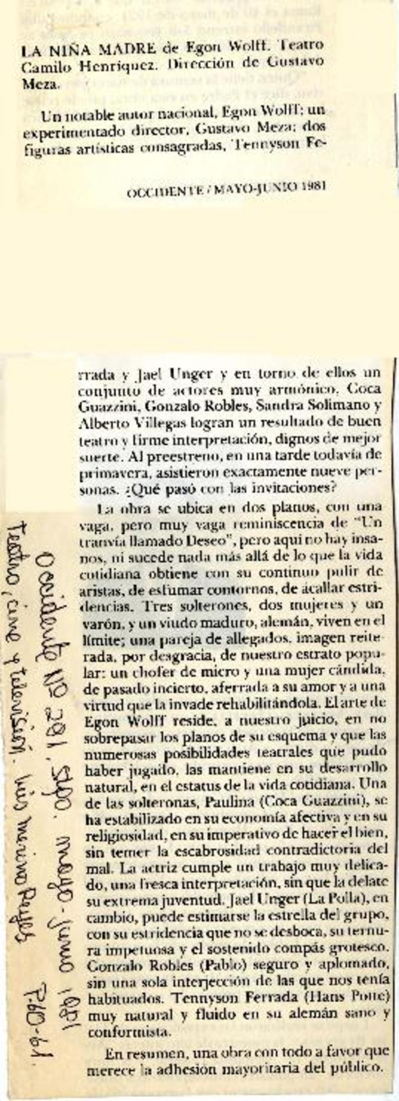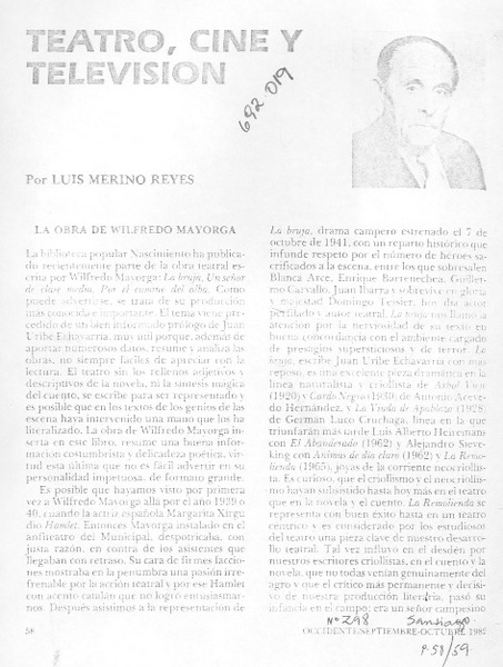 Teatro, cine y televisión [artículo] Luis Merino Reyes.