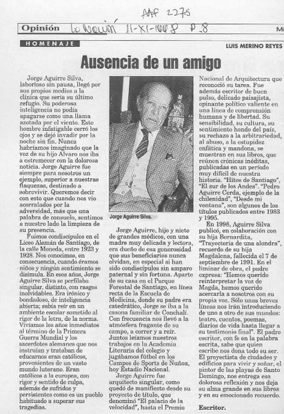 Ausencia de un amigo [artículo] Luis Merino Reyes.