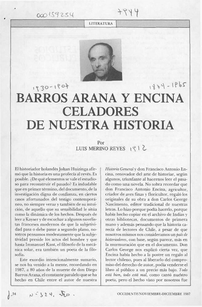 Barros Arana y Encina celadores de nuestra historia [artículo] Luis Merino Reyes.