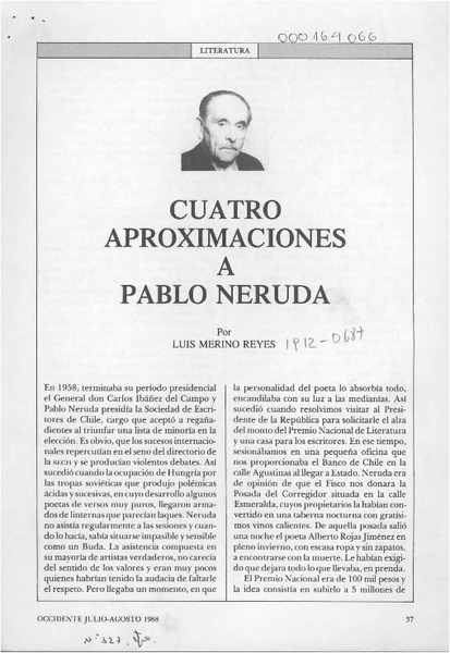 Cuatro aproximaciones a Pablo Neruda [artículo] Luis Merino Reyes.