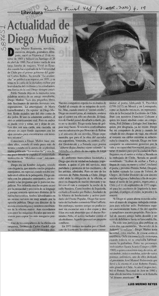 Actualidad de Diego Muñoz [artículo] Luis Merino Reyes