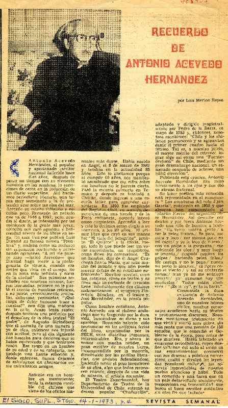 Retorno de Antonio Acevedo Hernández [artículo] Luis Merino Reyes
