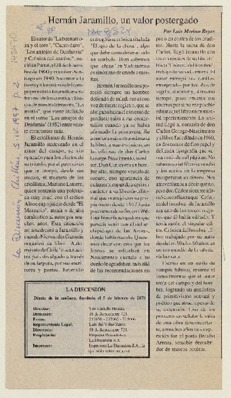 El periodista y el escritor [artículo] Luis Merino Reyes.
