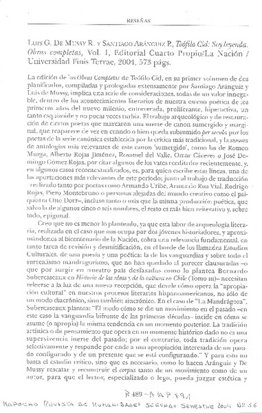 Aránguiz Pinto, Santiago - Mussy Roa, Luis G. de - Teófilo Cid: soy leyenda - Autores chilenos - Teófilo Cid: Soy leyenda