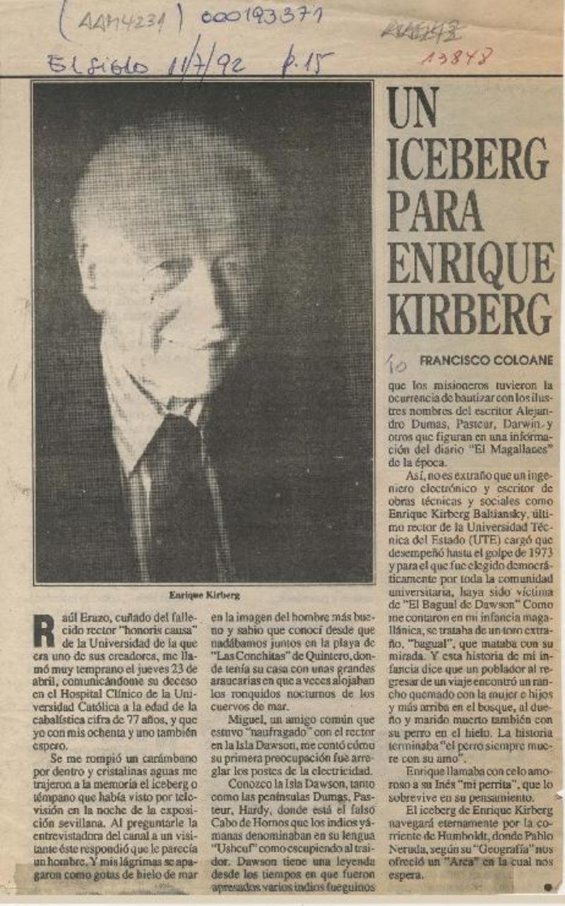 Un iceberg para Enrique Kirberg [artículo] Francisco Coloane.