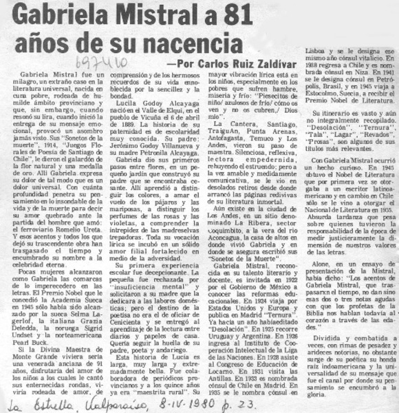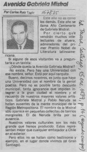 Avenida Gabriela Mistral [artículo] Carlos Ruiz Tagle.