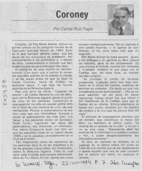 "Coroney" [artículo] Carlos Ruiz-Tagle.