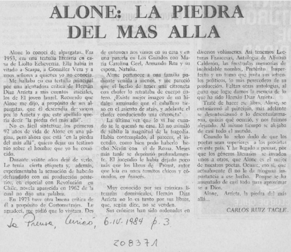 Alone, la piedra del más allá [artículo] Carlos Ruiz-Tagle.