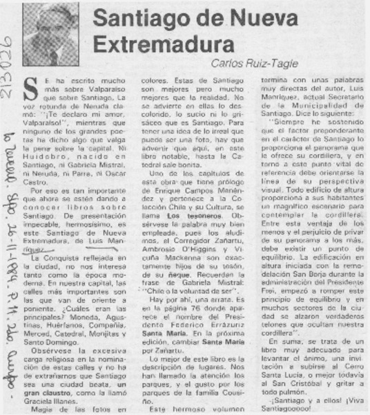 Santiago de Nueva Extremadura [artículo] Carlos Ruiz-Tagle.