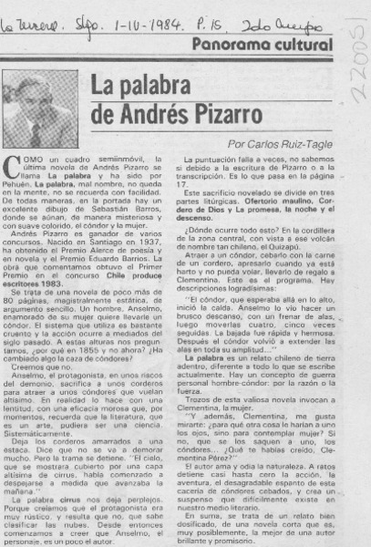 "La palabra" de Andrés Pizarro [artículo] Carlos Ruiz-Tagle.