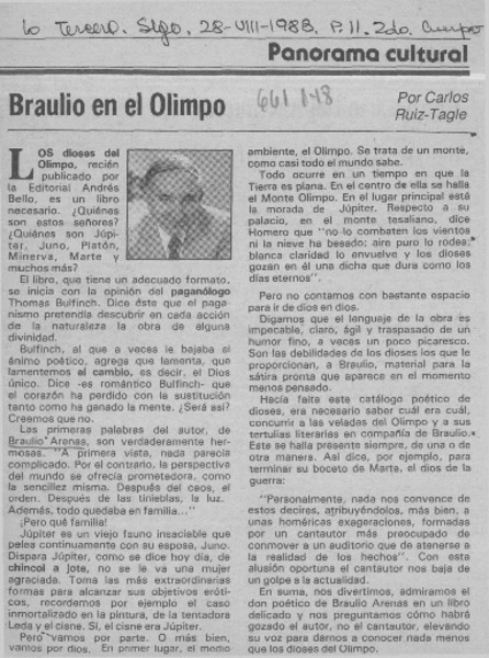 Braulio en el Olimpo [artículo] Carlos Ruiz-Tagle.