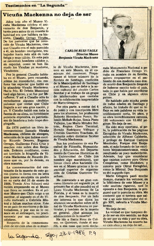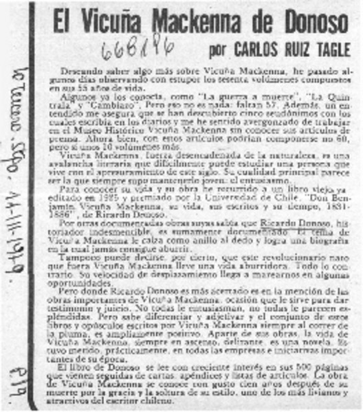 Vicuña Mackenna no deja de ser [artículo] Carlos Ruiz-Tagle.