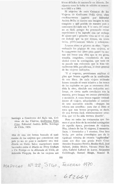 Autores chilenos - Feliú Cruz, Guillermo - Santiago a comienzos del siglo XIX