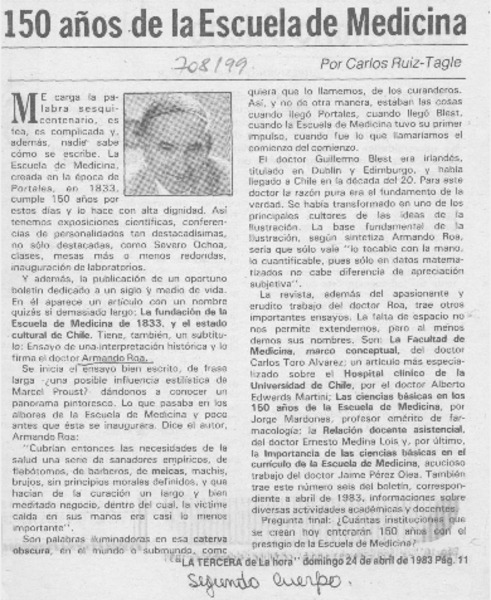 150 años de la Escuela de Medicina [artículo] Carlos Ruiz-Tagle.