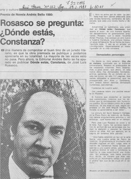 Rosasco, José Luis - Autores chilenos - Qué Pasa (Santiago, Chile)-- - Dónde estás Constanza?