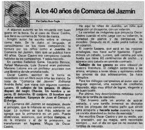 A los 40 años de Comarca del Jazmín [artículo] Carlos Ruíz-Tagle.