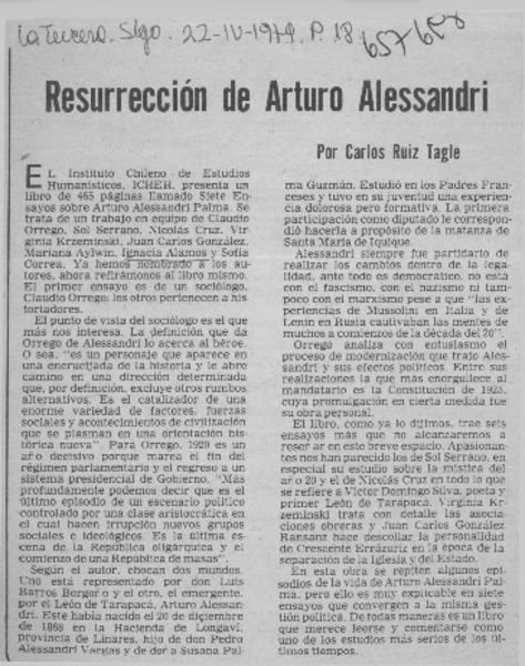Resurrección de Arturo Alessandri [artículo] Carlos Ruiz-Tagle.