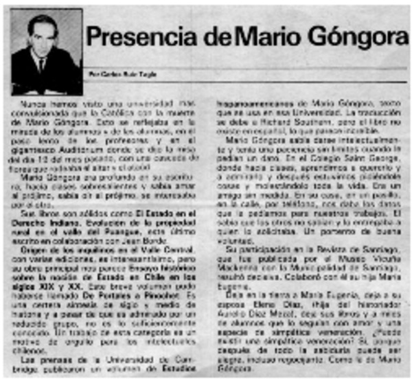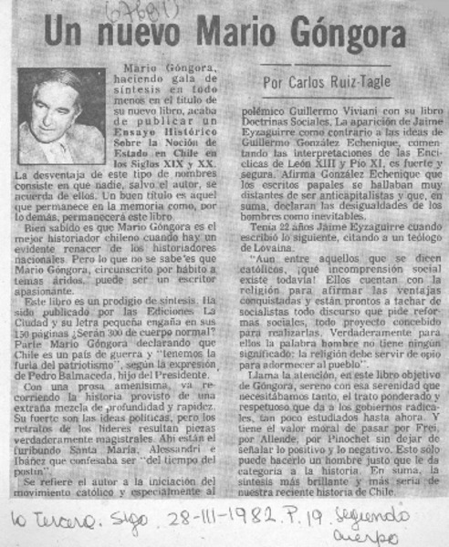 Un nuevo Mario Góngora [artículo] Carlos Ruiz-Tagle.
