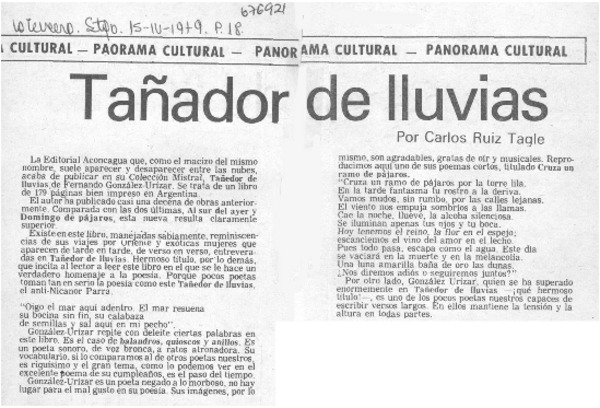Tañador de lluvias [artículo] Carlos Ruiz Tagle.