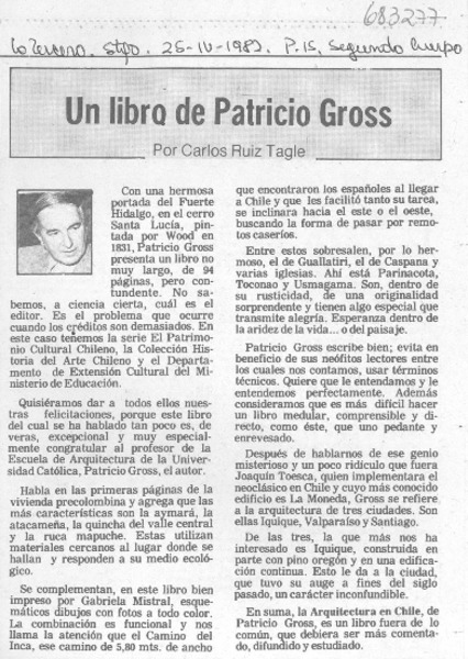 Un libro de Patricio Gross [artículo] Carlos Ruiz-Tagle.