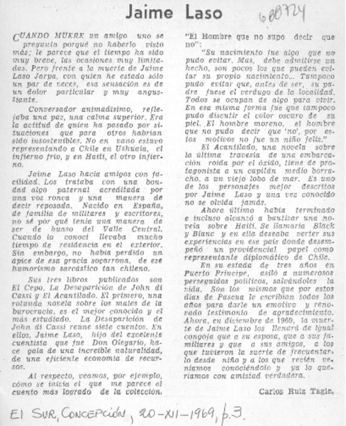 Carlos Ruiz-Tagle, entrevista póstuma [artículo] Jaime Quezada.