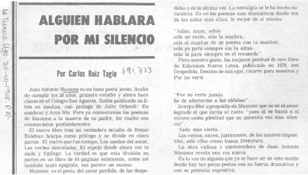 Autores chilenos - Massone, Juan Antonio - Alguién hablará por mi silencio