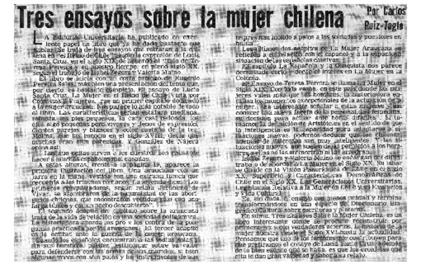 Tres ensayos sobre la mujer chilena" [artículo] Carlos Ruiz-Tagle.