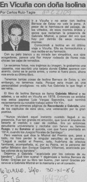 Alicia Morel y Vinca [artículo] Carlos Ruiz-Tagle.