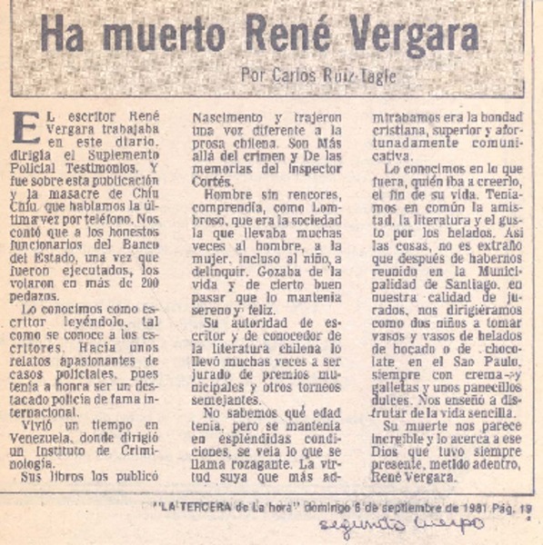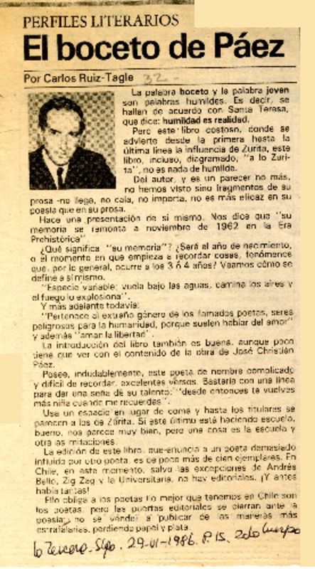 Carlos Ruiz-Tagle, "si no escribo miento": [entrevista] [artículo]