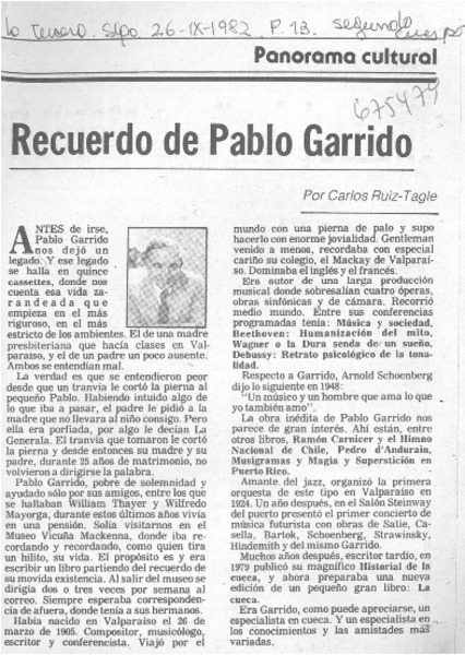 Recuerdo de Pablo Garrido [artículo] Carlos Ruiz-Tagle.
