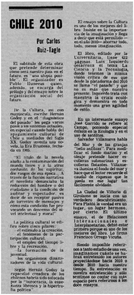 Chile 2010 [artículo] Carlos Ruiz-Tagle.