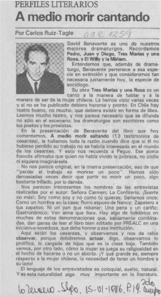 A medio morir cantando [artículo] Carlos Ruiz-Tagle.