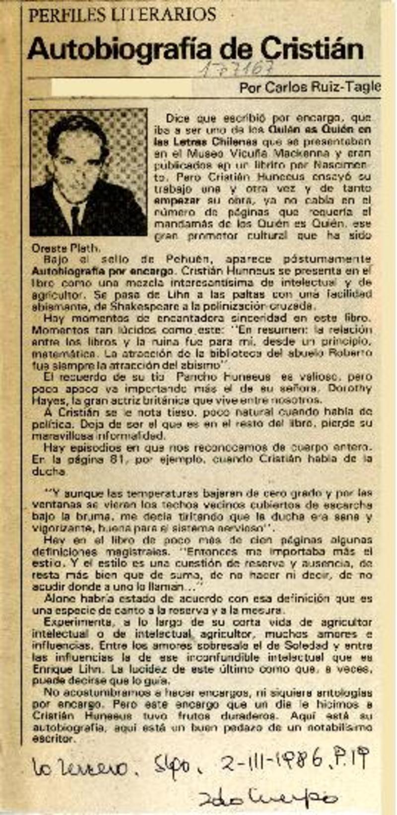 HUNEEUS, CRISTIAN - AUTOBIOGRAFIA POR ENCARGO