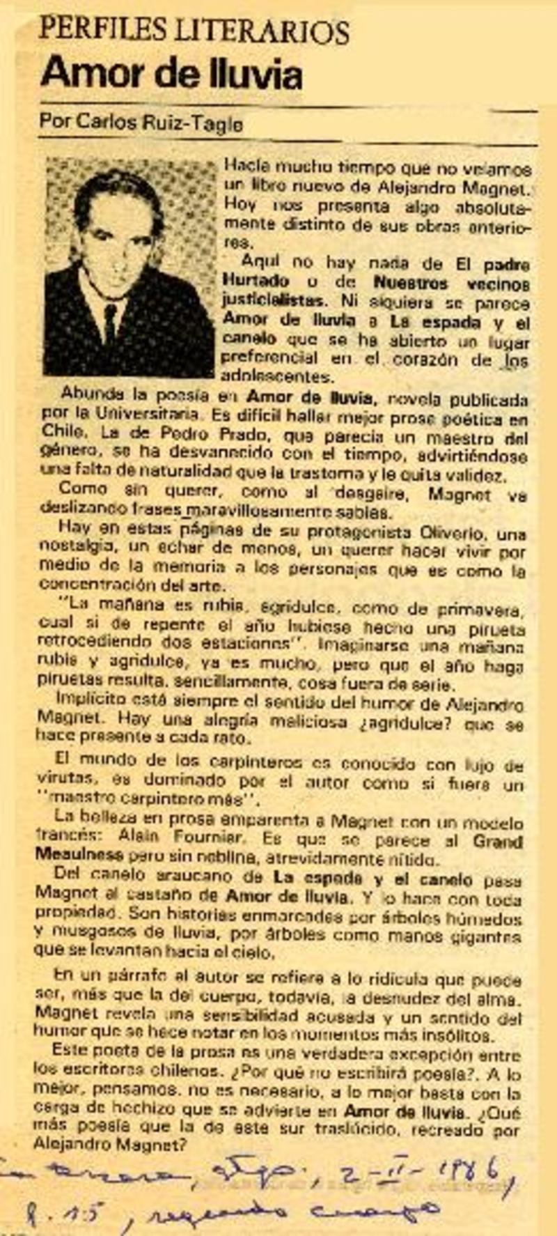 Amor de lluvia [artículo] Carlos Ruiz-Tagle.