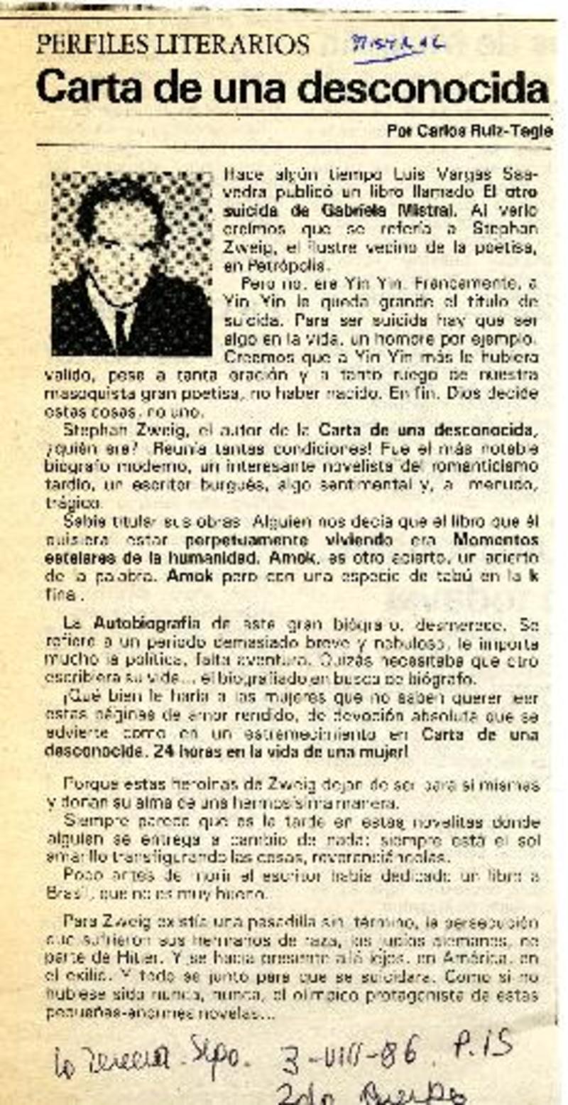 Carta a una desconocida [artículo] Carlos Ruiz-Tagle.
