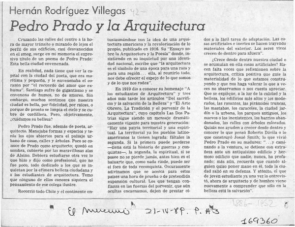 Pedro Prado y la arquitectura [artículo] Hernán Rodríguez Villegas.