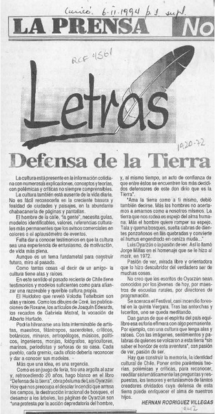 Defensa de la tierra [artículo] Hernán Rodríguez Villegas.