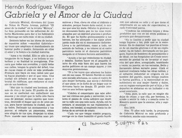 Gabriela y el amor de la ciudad [artículo] Hernán Rodríguez Villegas.