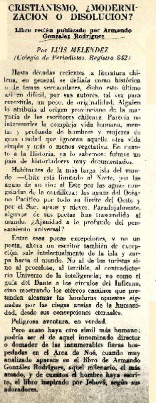 Autores chilenos - González Rodríguez, Armando - Cristianismo: modernización o disolución