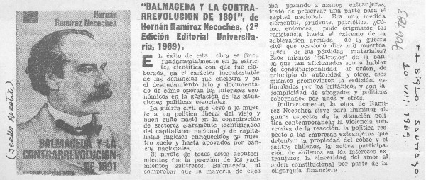 Balmaceda y la contrarrevolución de 1891" [artículo] Yerko Moretic.