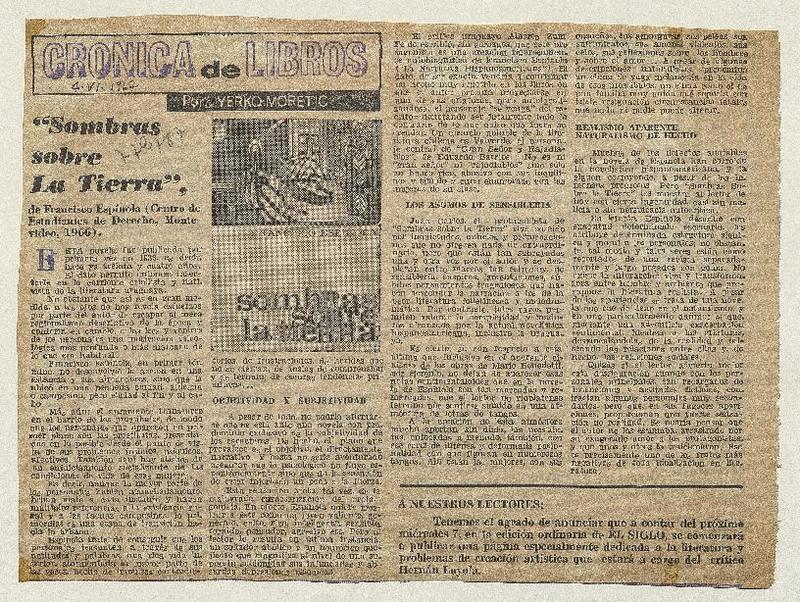 Sombras sobre la tierra" [artículo] Yerko Moretic.