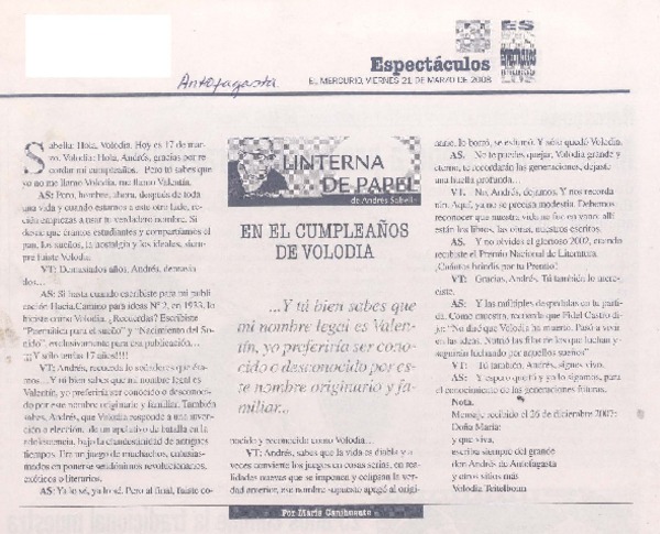 En el cumpleaños de Volodia [artículo]María Canihuante.