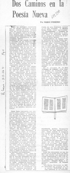 Dos caminos en la poesía nueva [artículo] Mario Ferrero.