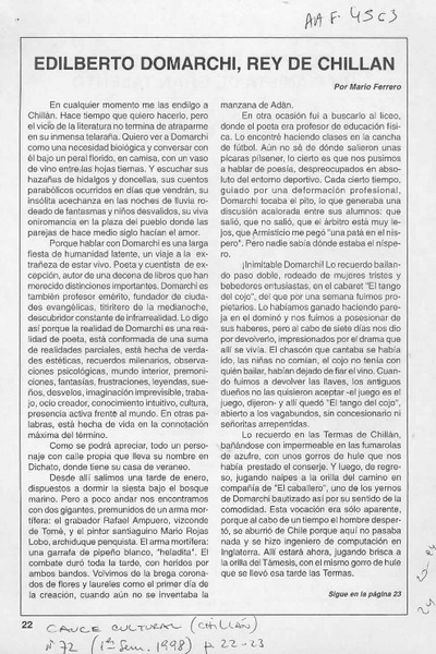 Edilberto Domarchi, rey de Chillán [artículo] Mario Ferrero.