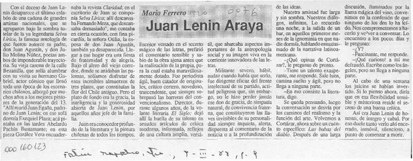 Juan Lenin Araya [artículo] Mario Ferrero.