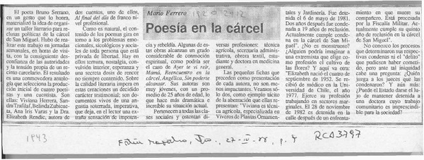 Poesía en la cárcel [artículo] Mario Ferrero.